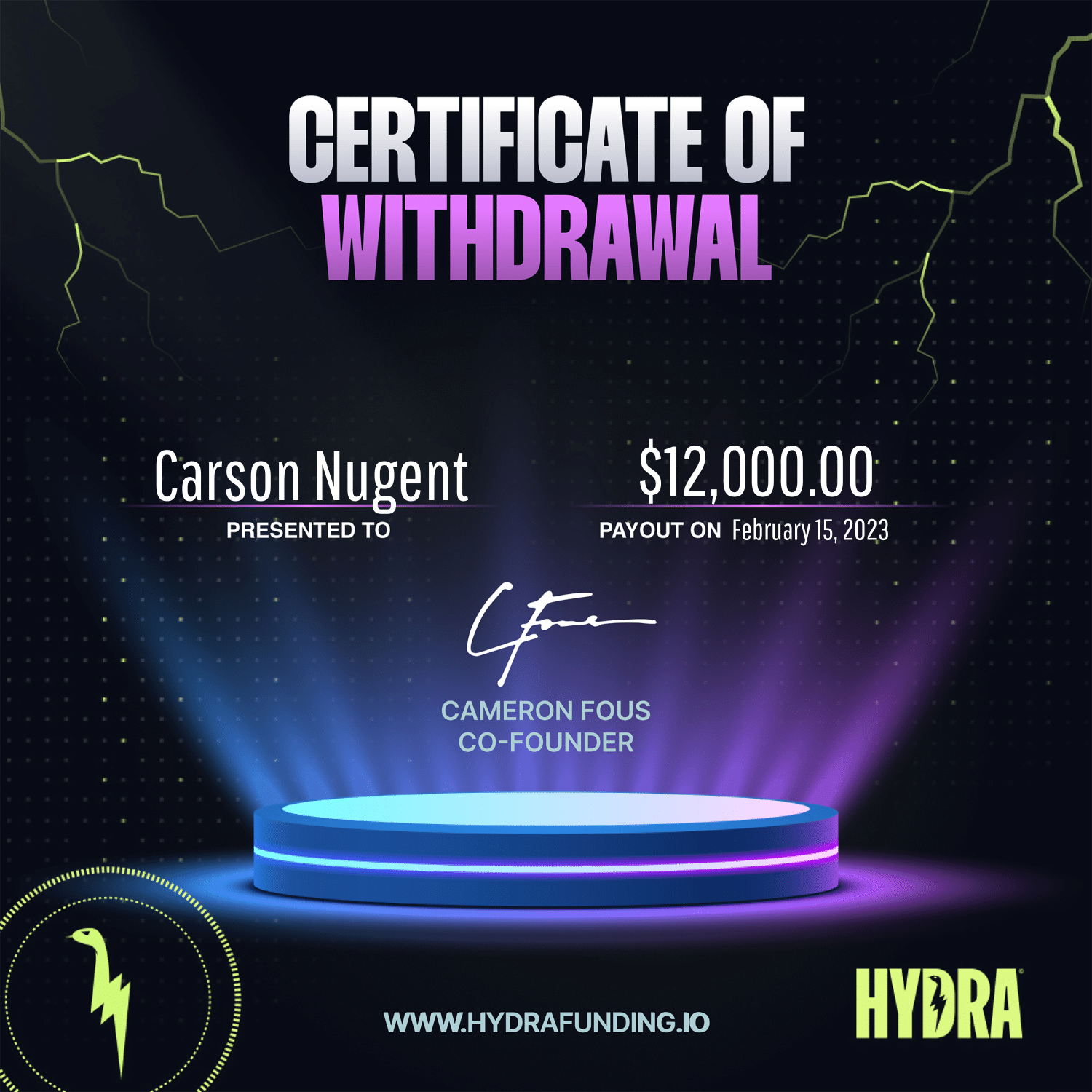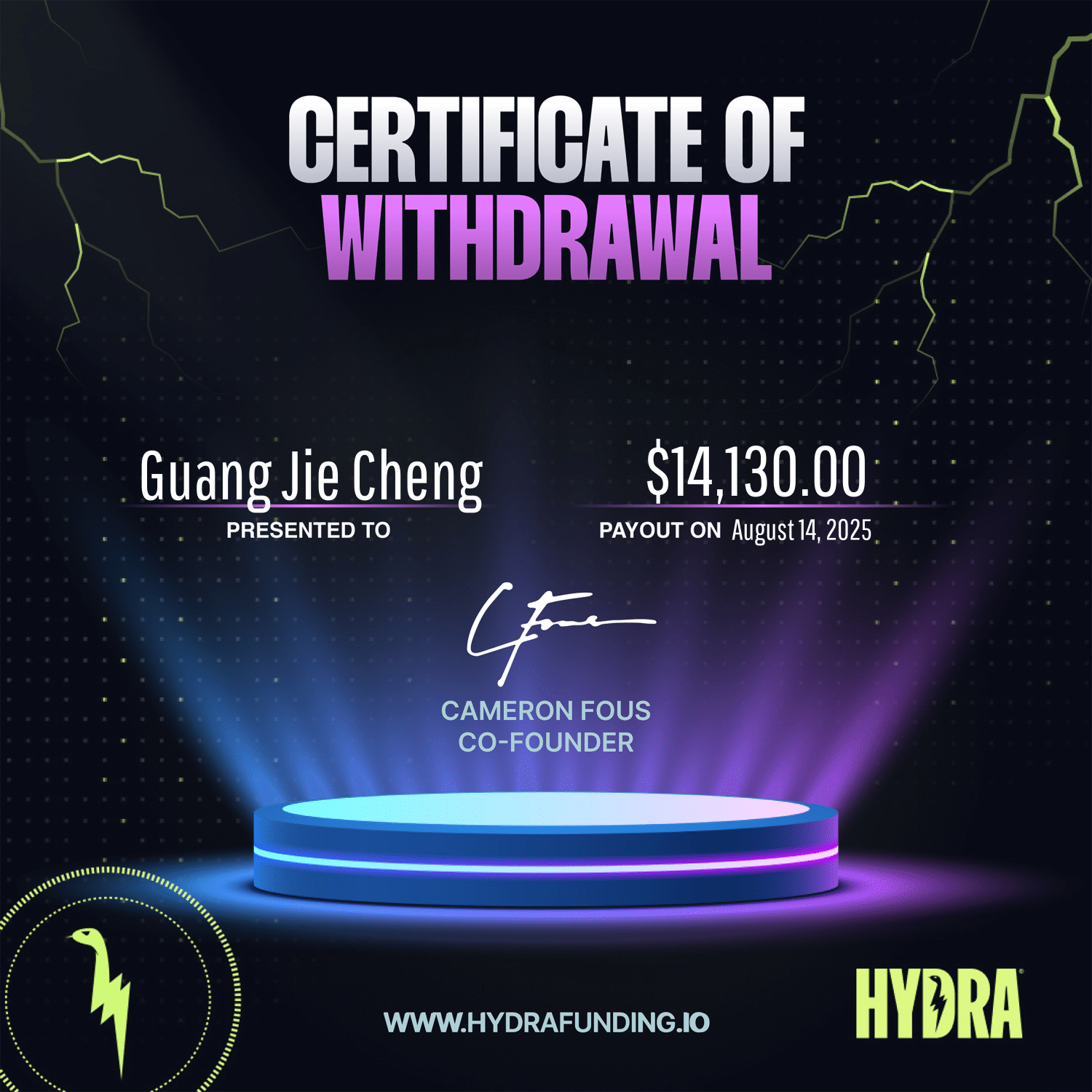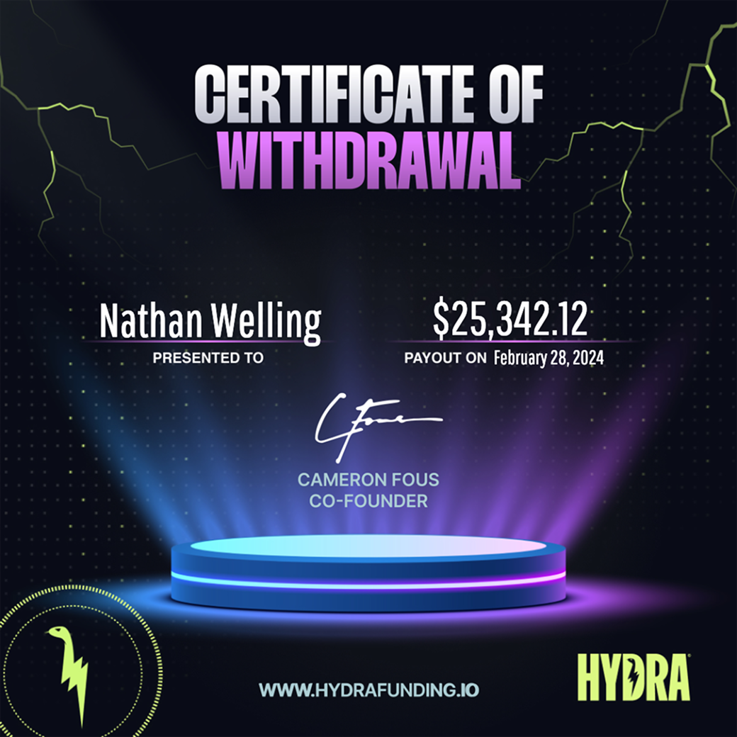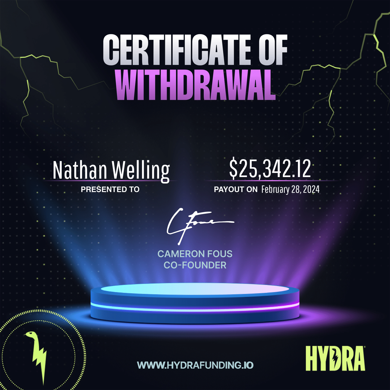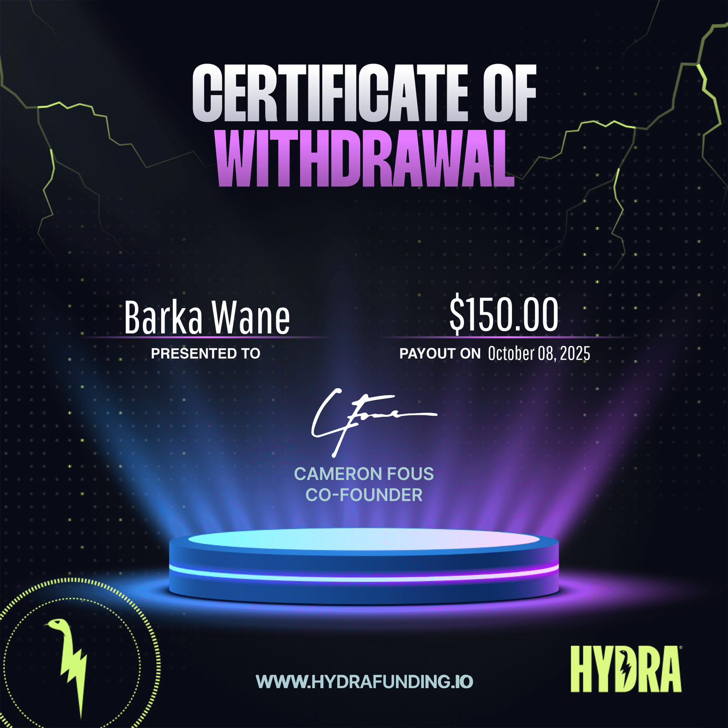 Top Hydra traders have historically withdrawn an average of ~5.4% per payout, based on disciplined risk management and consistent performance.